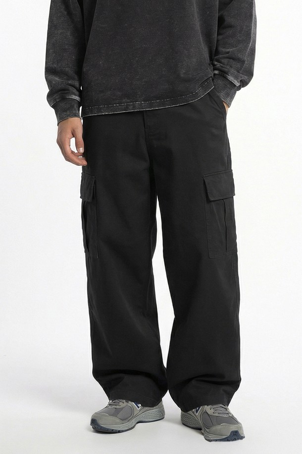 남녀공용 워싱 노턱 카고 와이드 팬츠[BLACK](UC3LP20_39)
