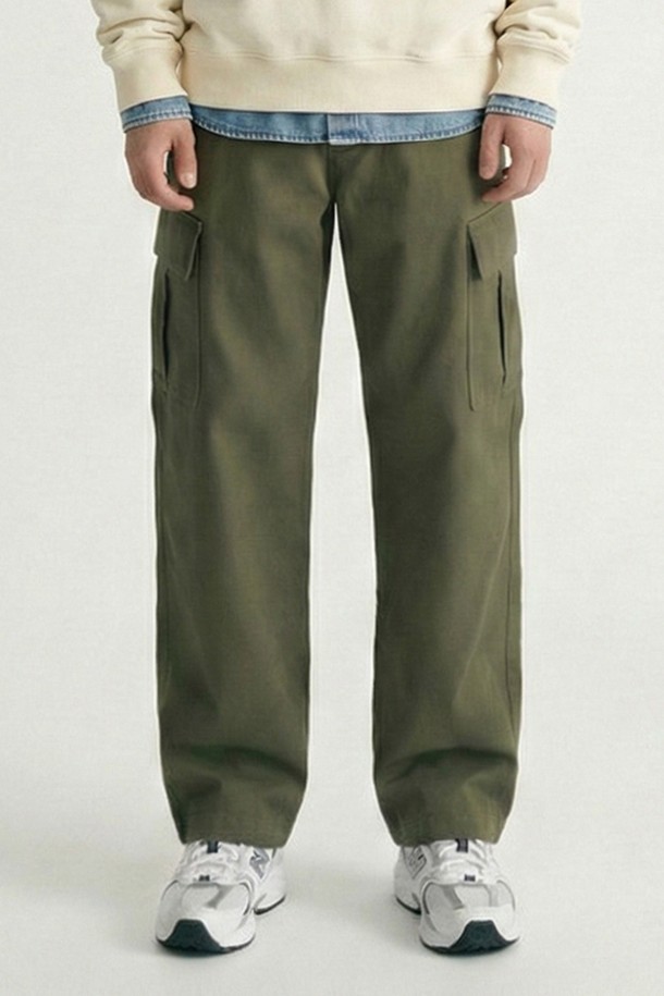 남녀공용 워싱 노턱 카고 와이드 팬츠[KHAKI](UC3LP20_65)