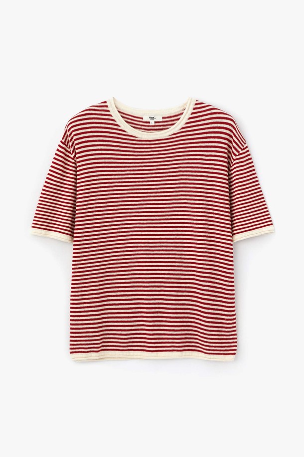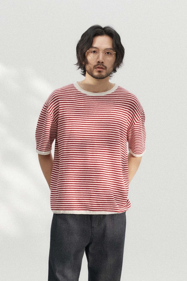 스트라이프 반팔 니트_RED