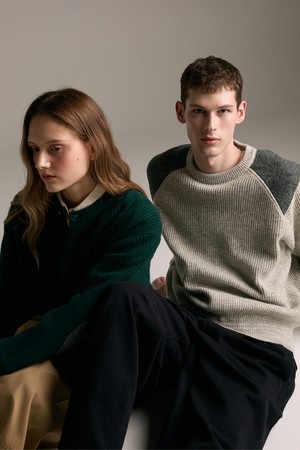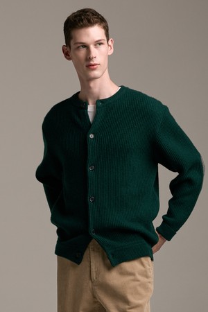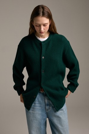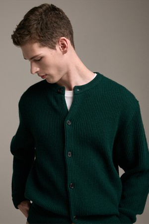 [램스울] 해리스트위드 라운드넥 가디건 그린