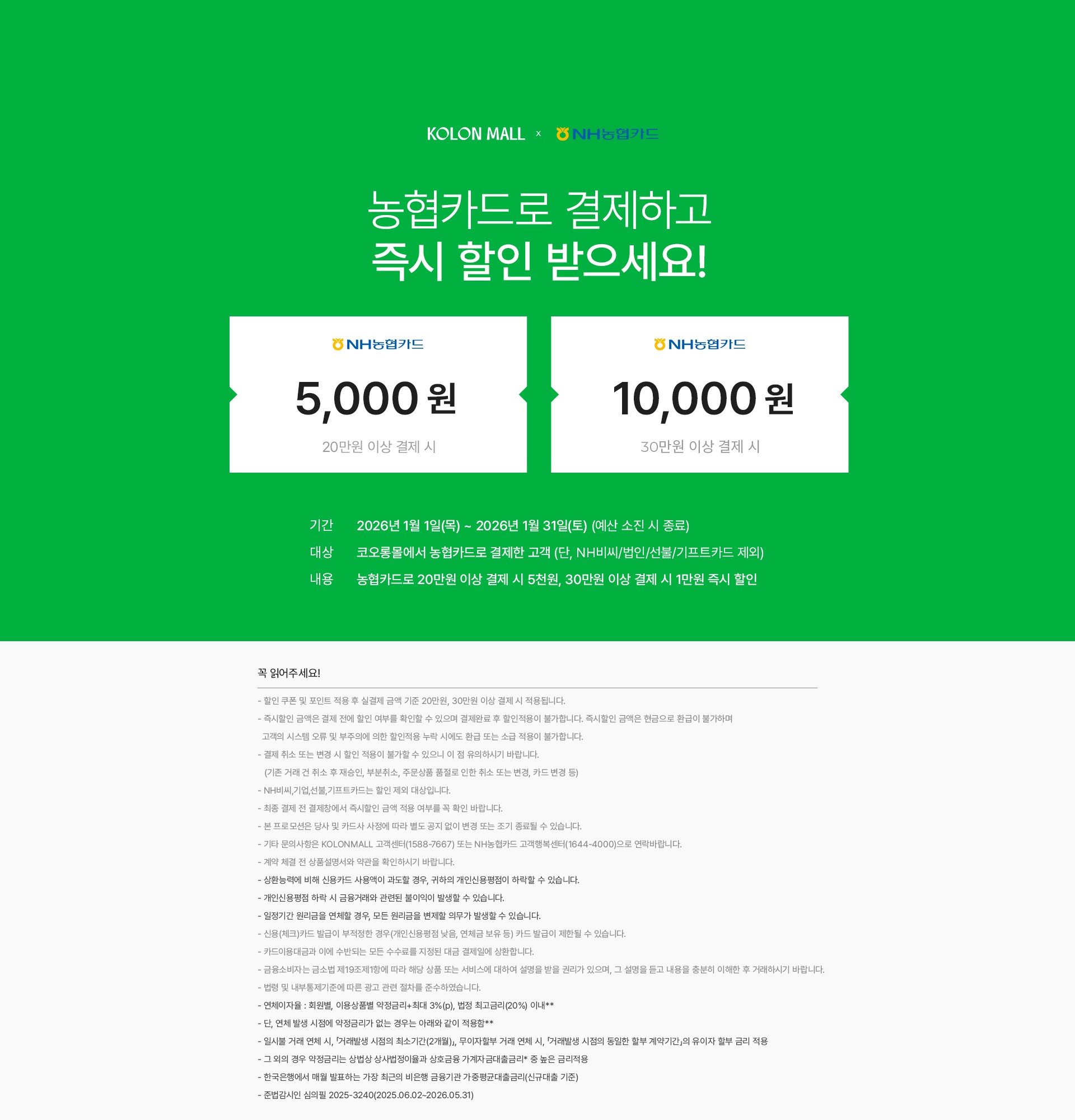 20/30만원 이상 결제 시 5천/1만원 즉시 할인