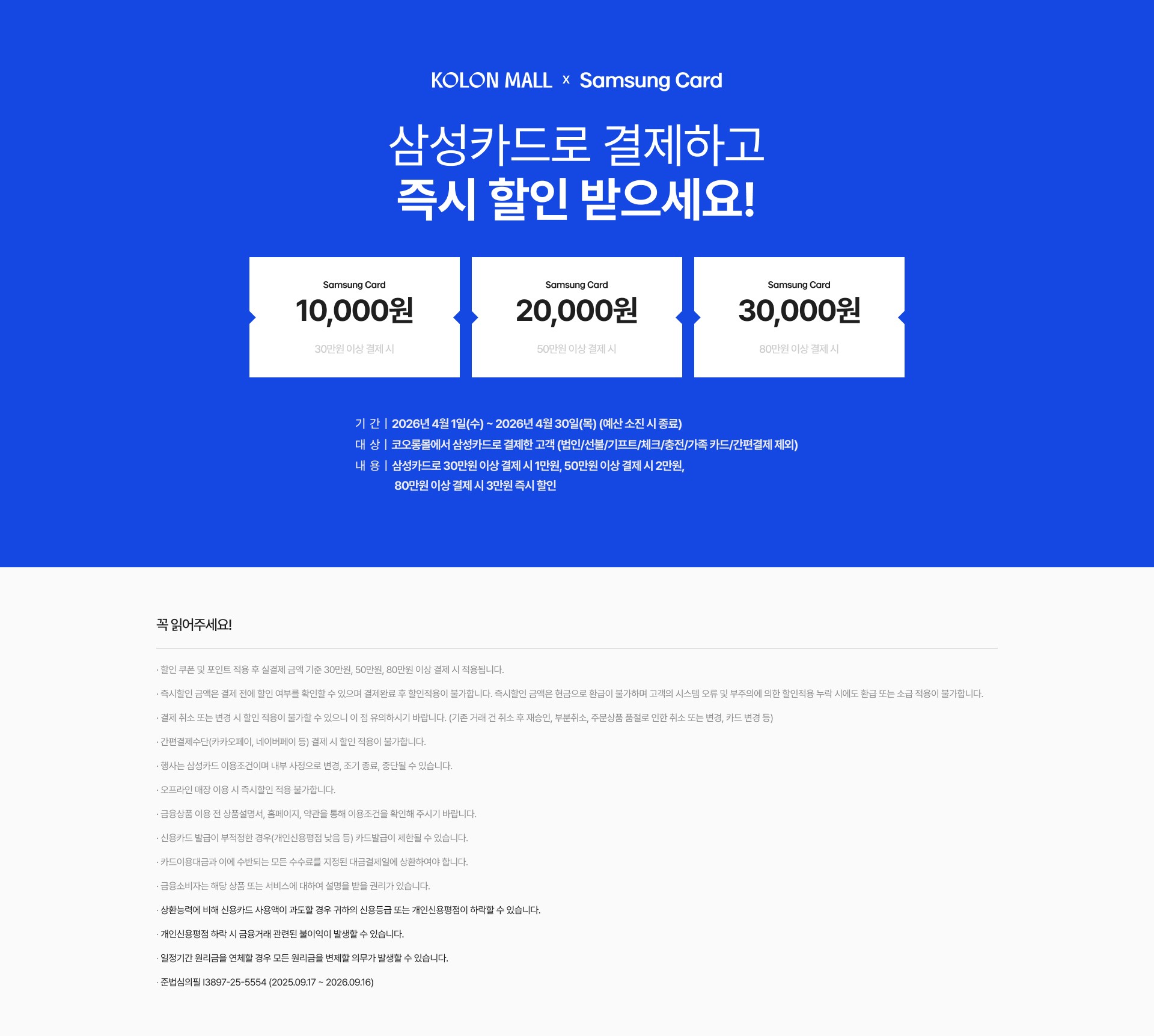 30/50/80만원 이상 결제 시 1/2/3만원 즉시 할인