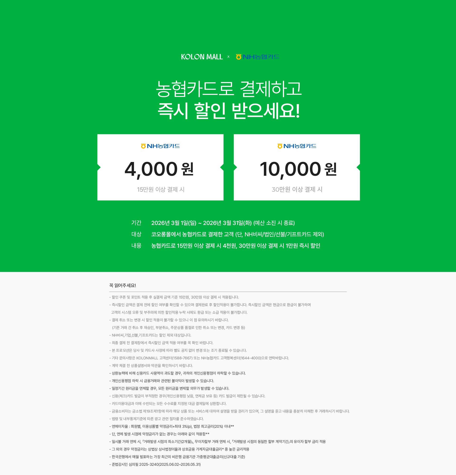 15/30만원 이상 결제 시 4천원/1만원 즉시 할인