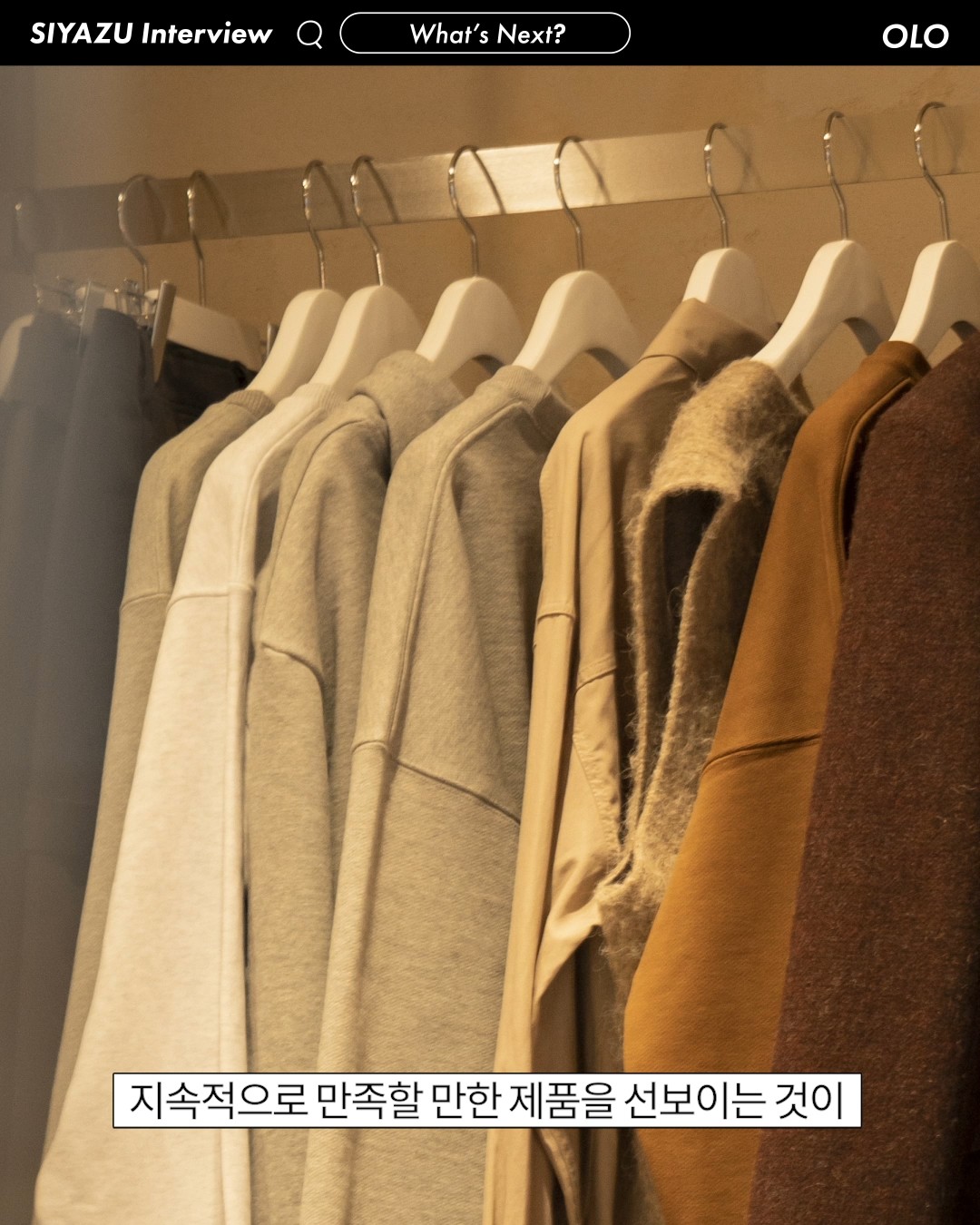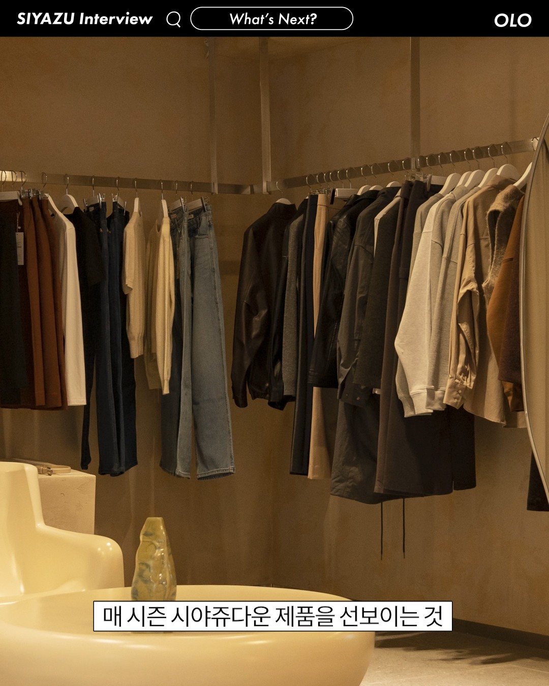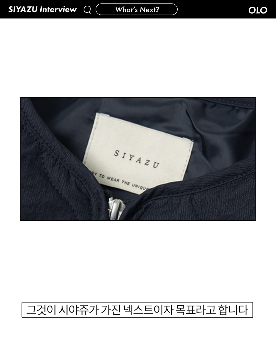 빠른 트렌드 변화로 많은 브랜드가 생기고 없어지는 요즘. 간결하지만 지속적으로 만족할 만한 제품을 선보이는 것이 시야쥬의 목표라고 합니다. 누군가는 브랜드가 멋있어야 한다고 말하지만, 매 시즌 시야쥬다운 제품을 선보이는 것, 그것이 시야쥬가 가진 넥스트이자 목표라고 합니다.