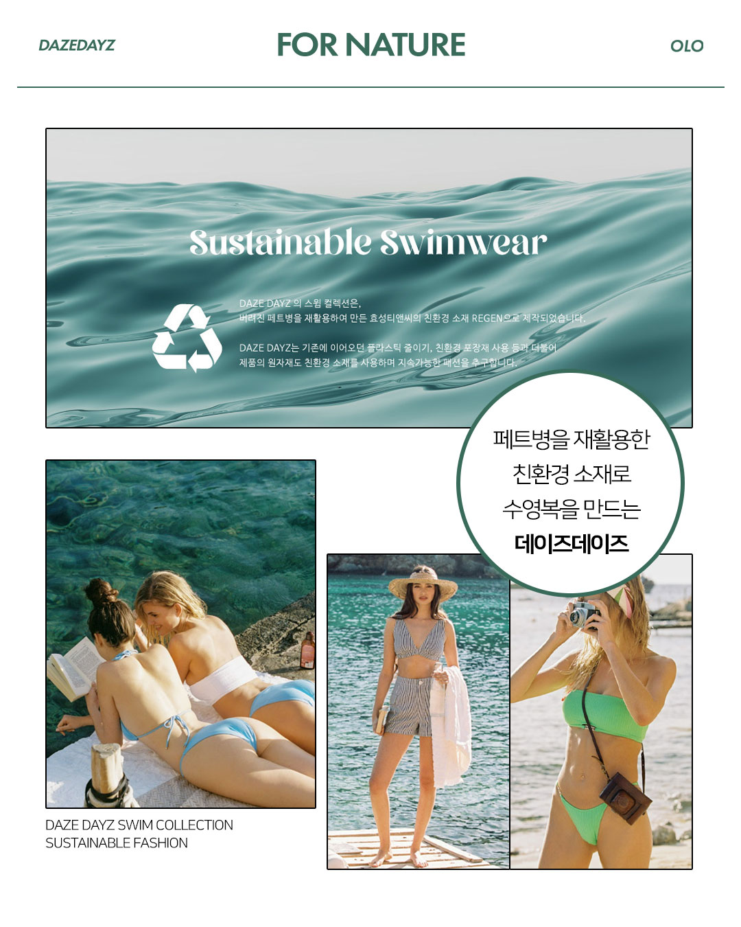 데이즈데이즈는 재사용이 가능하거나 생분해되는 소재를 이용해 패키지를 만들고, 페트병을 재활용한 친환경 소재로 수영복을 만드는데요. 좀 더 예쁜 외관을 포기하고 더 높은 비용을 지불해야 하지만, 고객이 작은 노력을 알아줄 때 뿌듯함을 느낀다고 합니다.