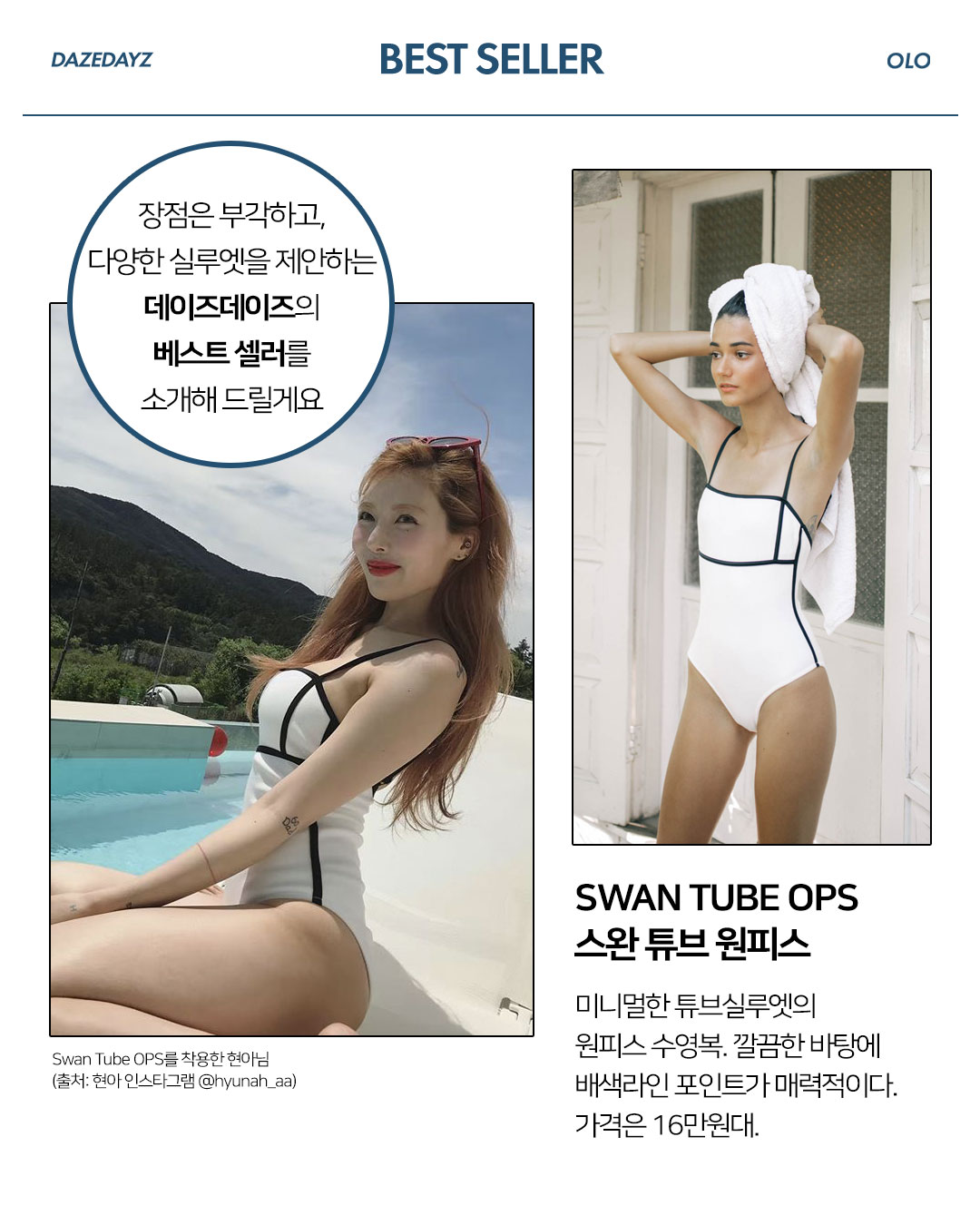 몸에 밀착되어 라인을 드러내고, 활동성이 중요한 수영복의 특성상 데이즈데이즈는‘핏’을 가장 중요하게 생각하는데요.장점은 부각하고, 입는 사람의 자신감까지 보완해 줄 다양한 실루엣을 제안합니다. 특히 SWAN TUBE OPS와 COBALT TUBE OPS는 2018년 출시 후 6년간 리오더 되고 있는 베스트셀러라고 하는데요. 셀럽뿐만 아니라 직원들의 사랑까지 한몸에 받는 아이템이죠.
