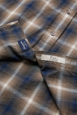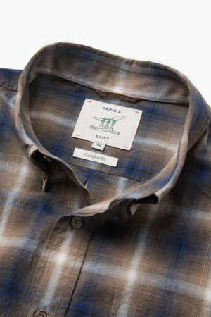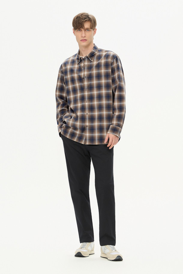 [Imported Fabric] 네이비 옴브레 체크 셔츠 (컴포트핏)