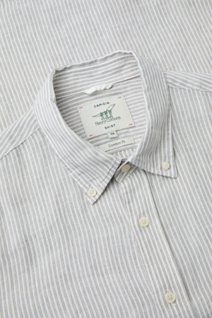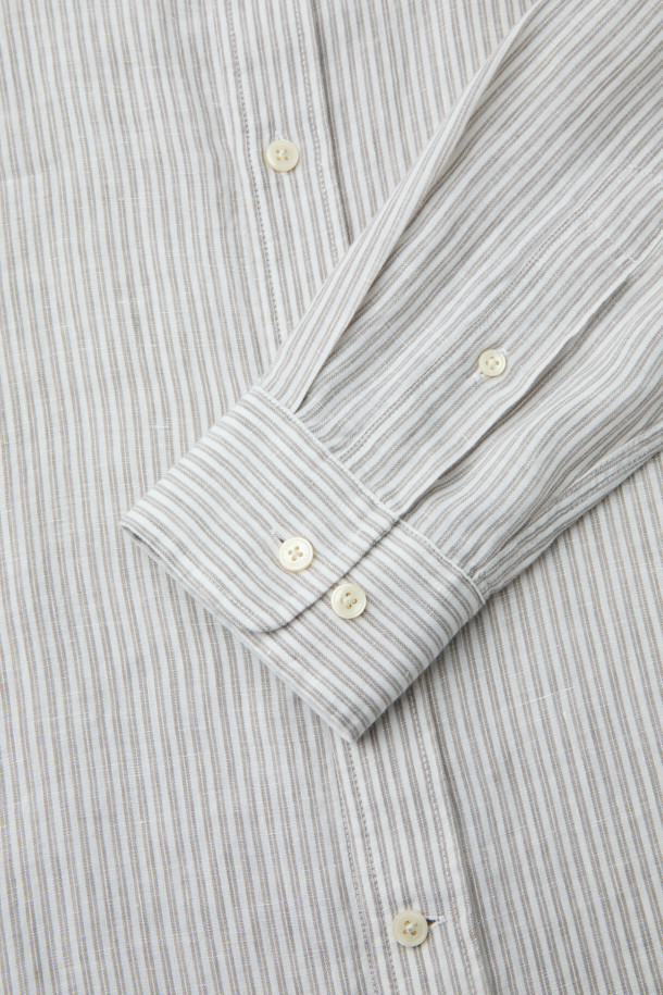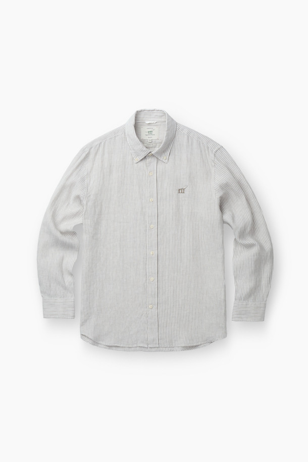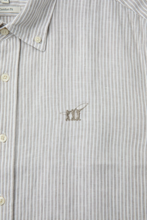 브라운 린넨 스트라이프 셔츠 (컴포트핏)