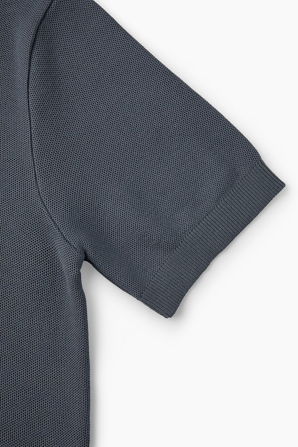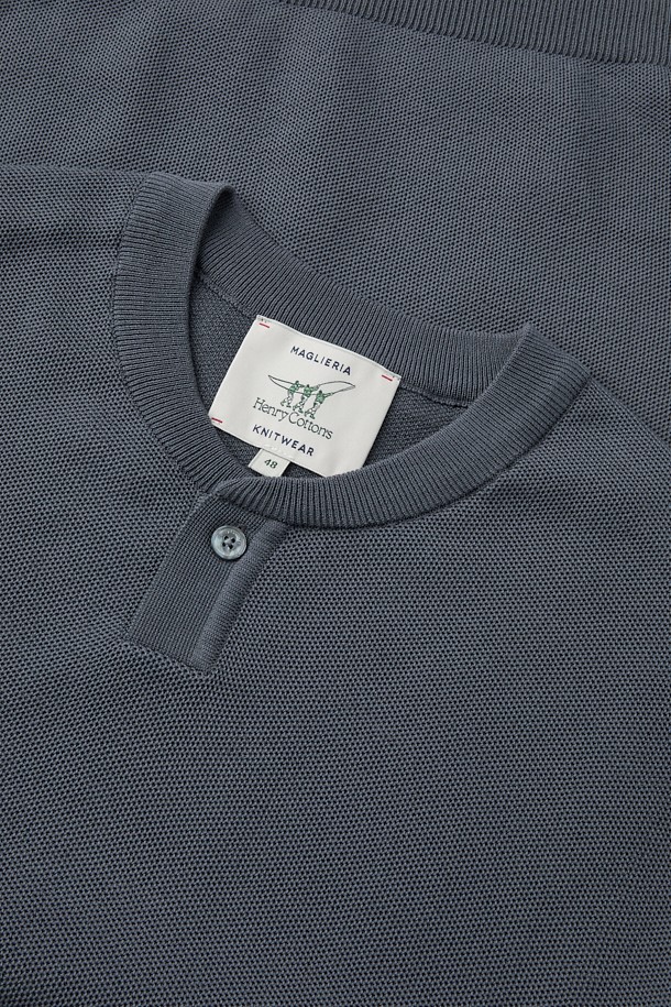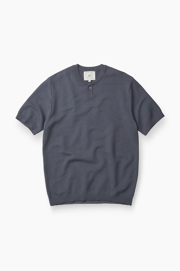 잔조직 헨리넥 반팔 니트