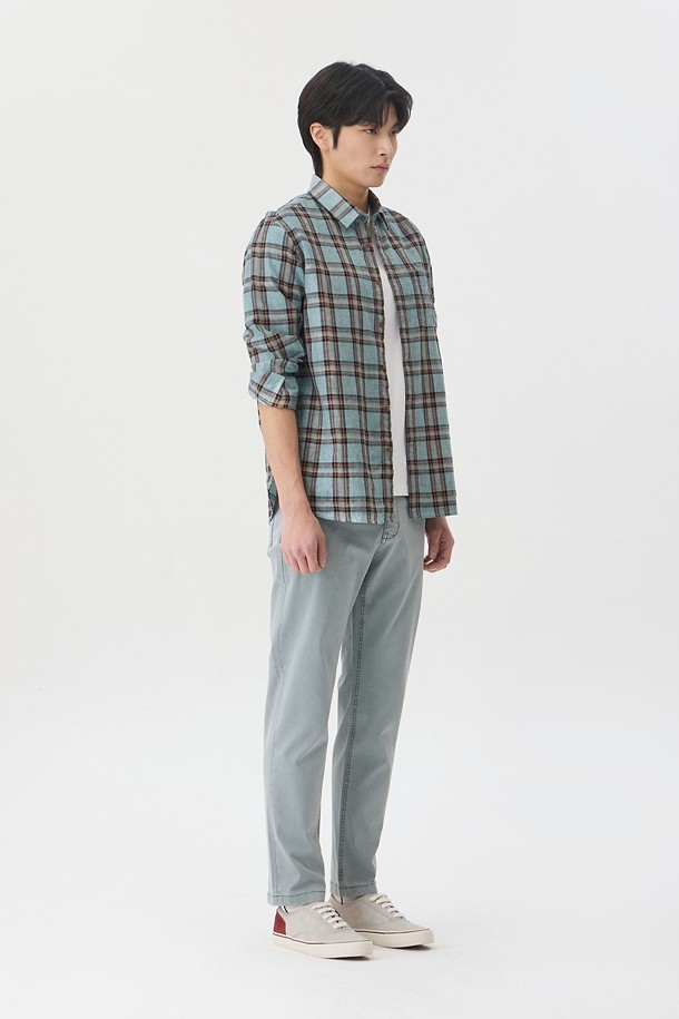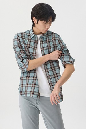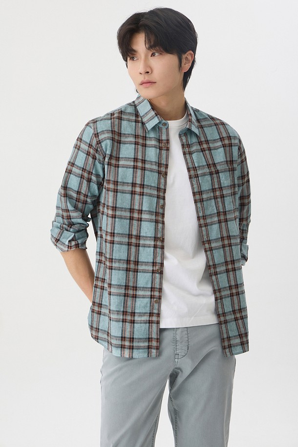 린넨 체크 가먼트다잉 캐주얼셔츠