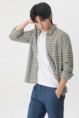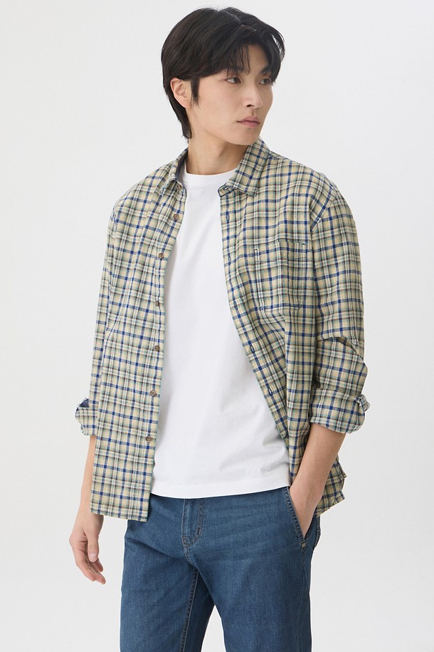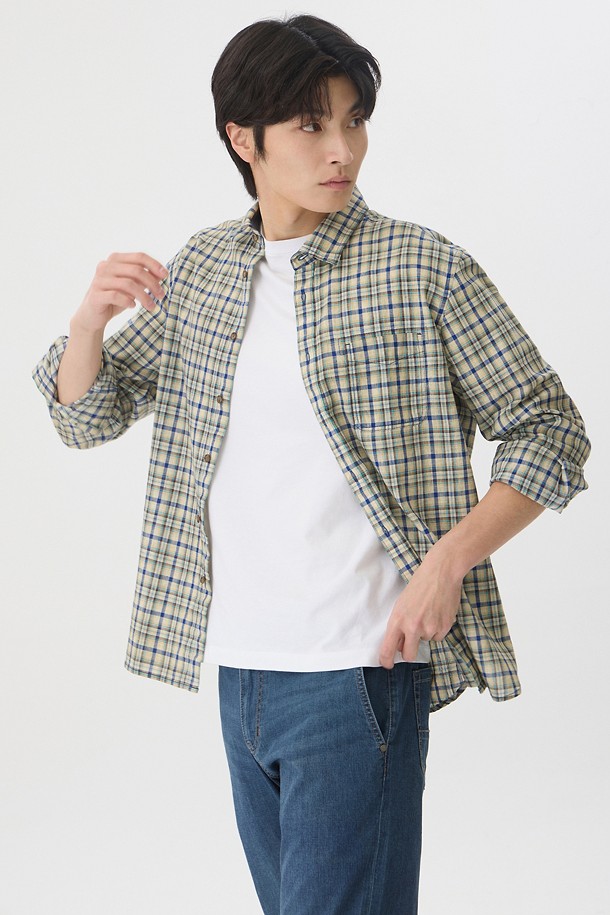 린넨 체크 가먼트다잉 캐주얼셔츠