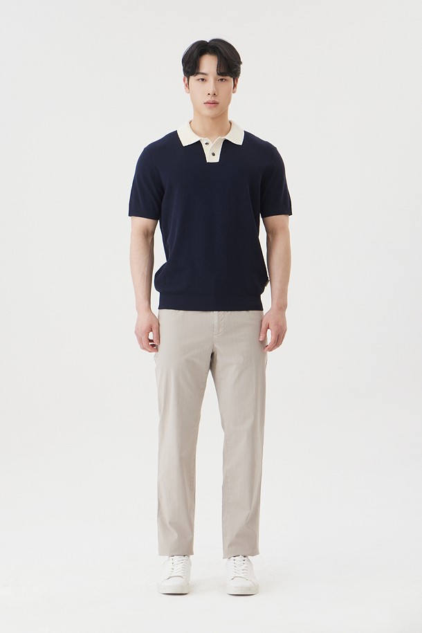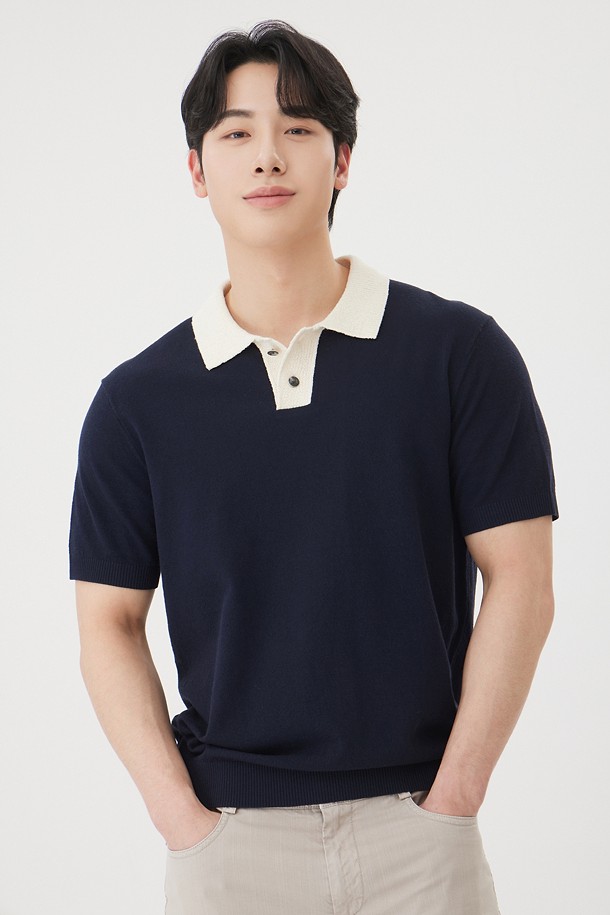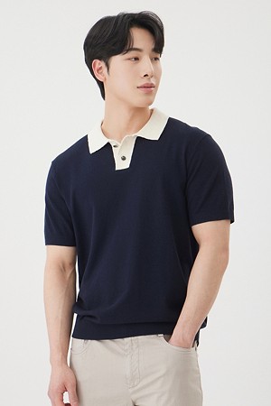 [워셔블] 칼라 배색 폴로넥 스웨터