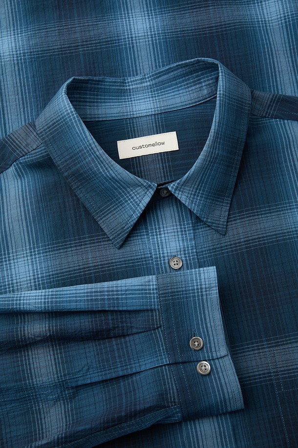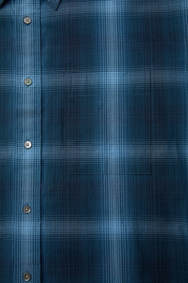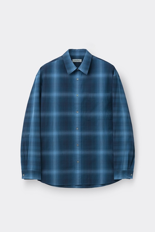 [Essentials] Navy Oversized Fit Check Shirt