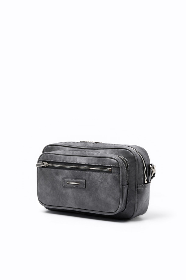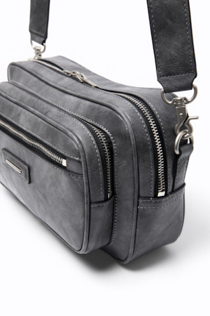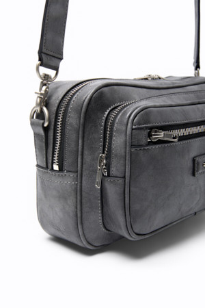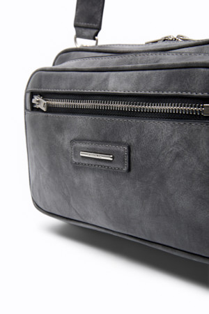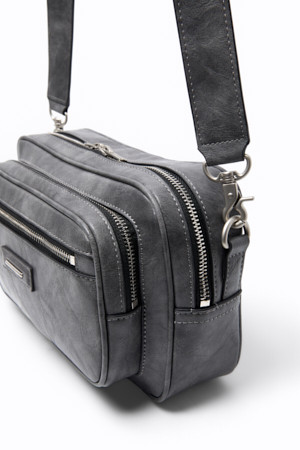 Grey Faux Leather Cross Bag