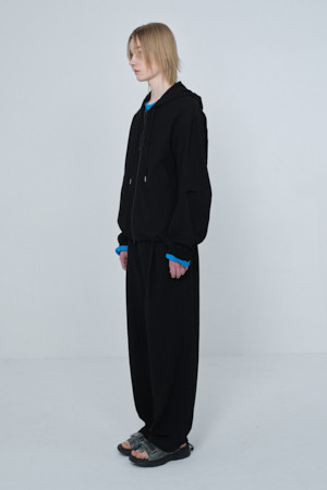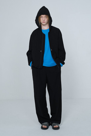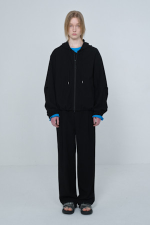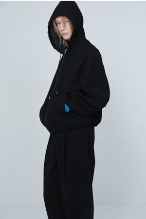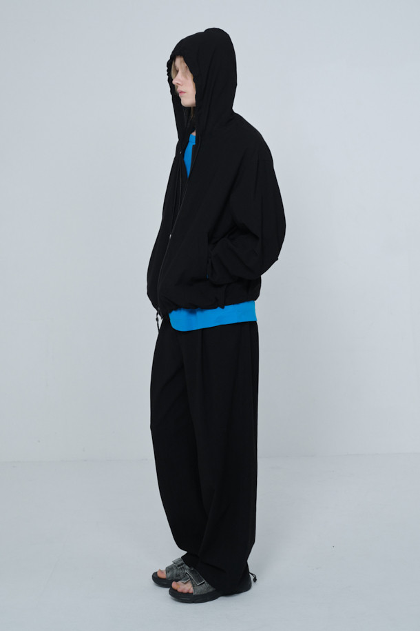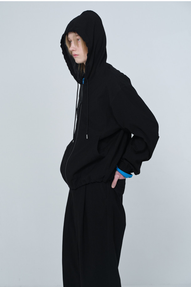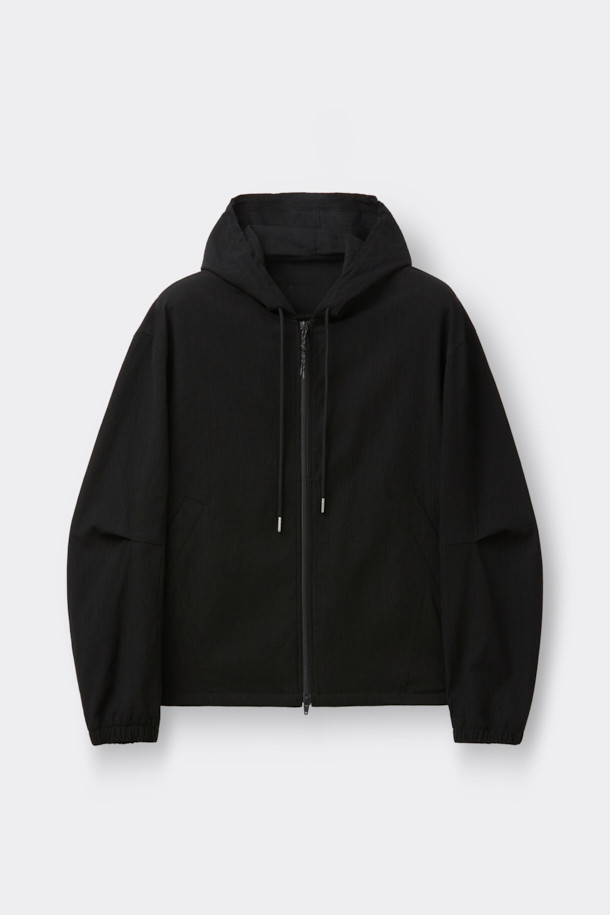 [Online Only] Black Crinkled Hood Zip Jacket