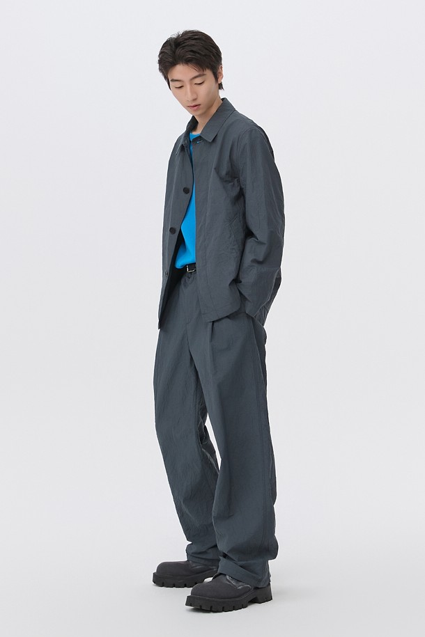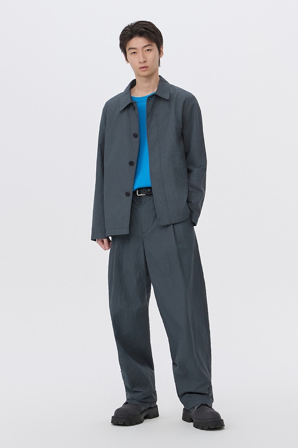 Grey Loose Fit Tucked Creased Pants