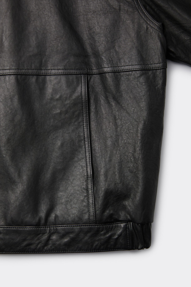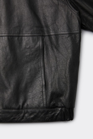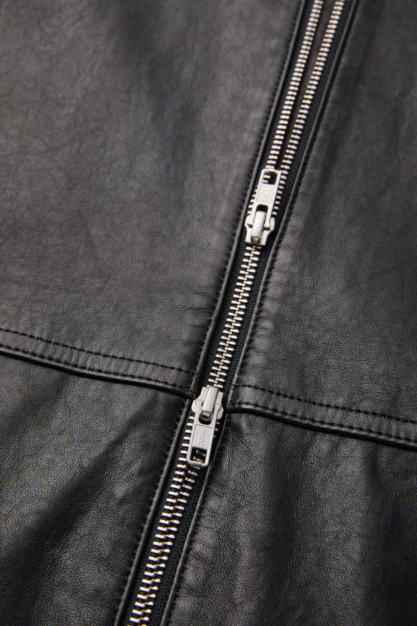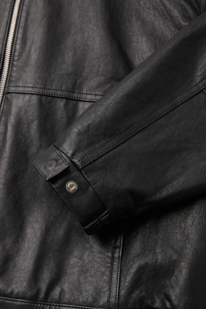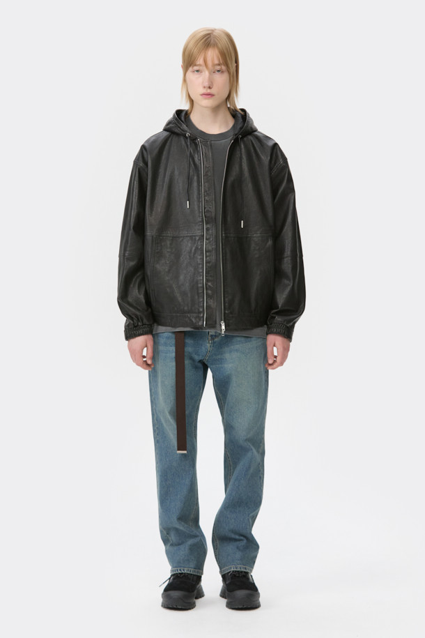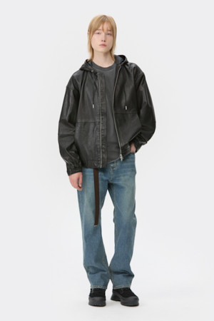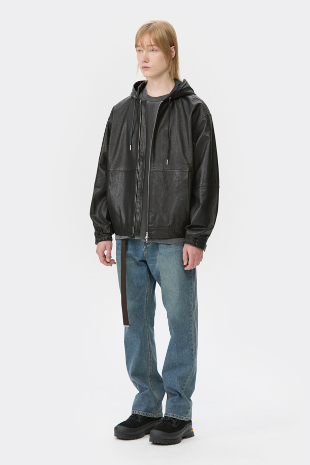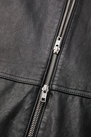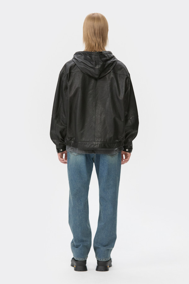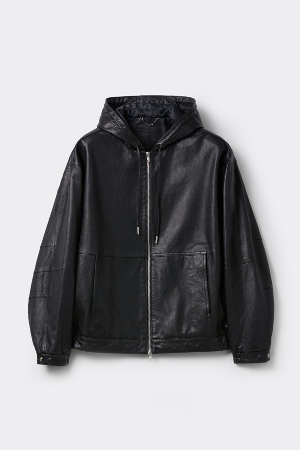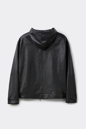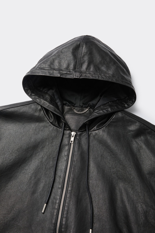 Black Leather Hood Zip Jacket