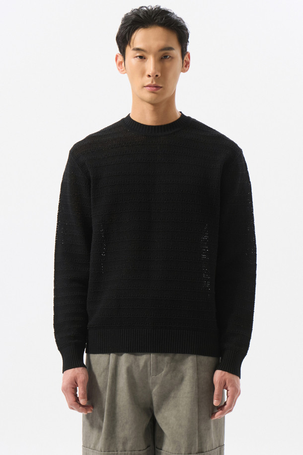 Black Solid Netting Sweater