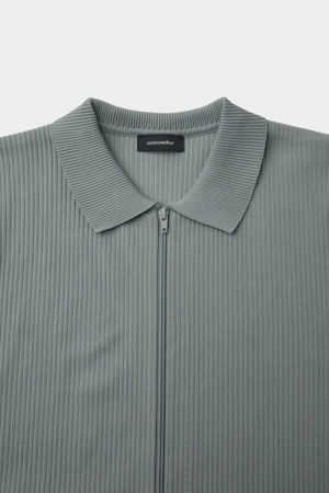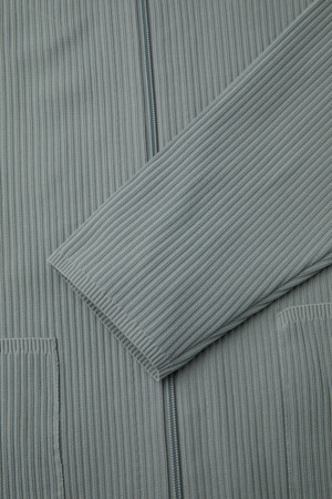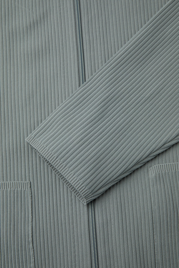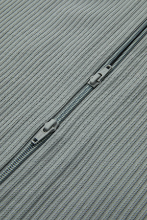 Grey Pleated Poly Zip-Up Cardigan