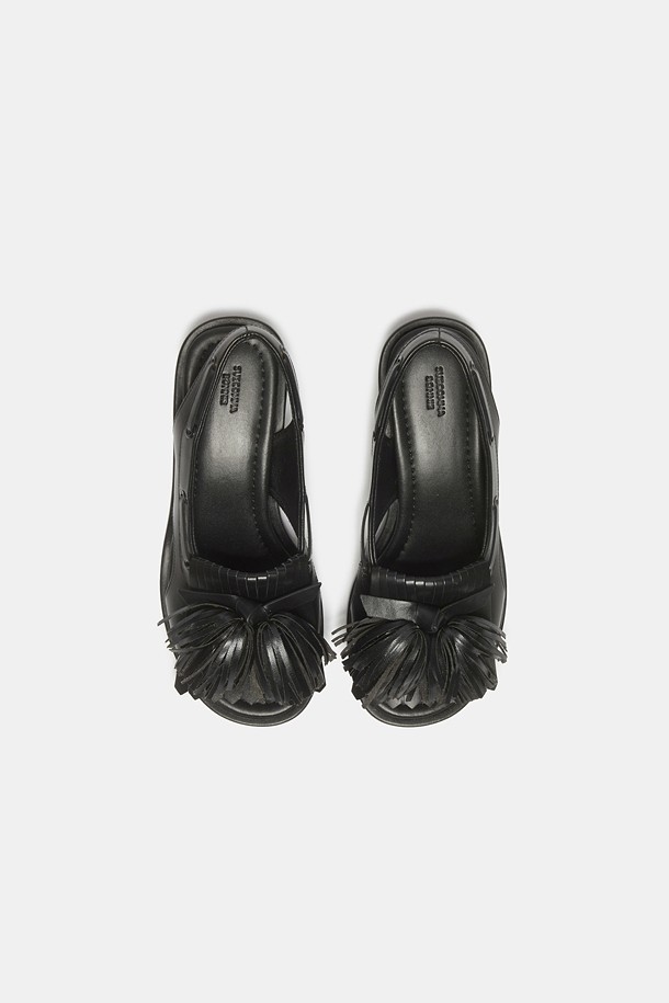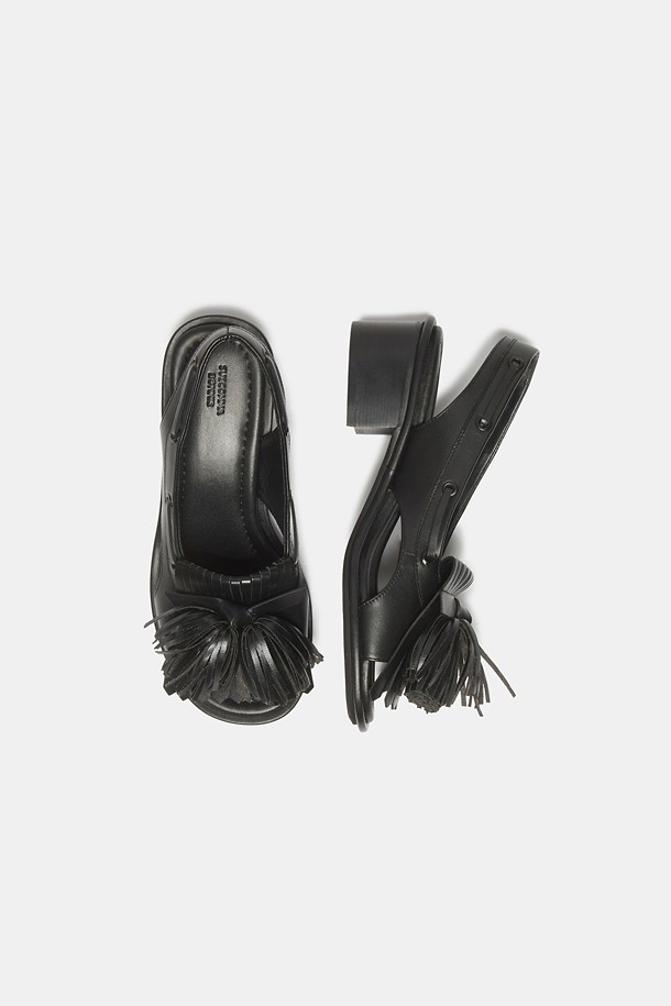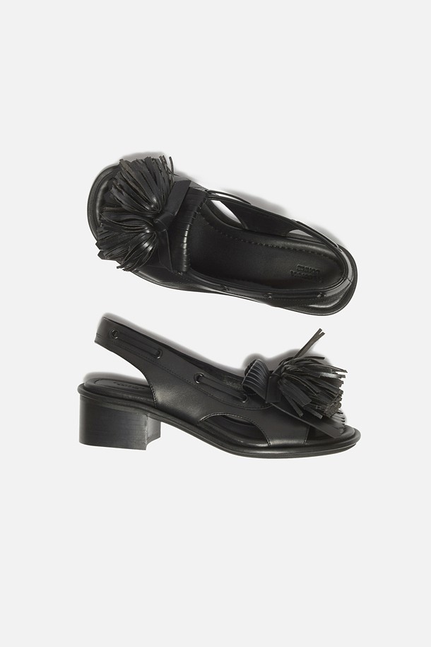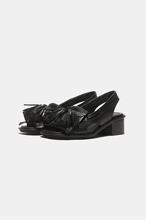 Pompom heel sandal(black)