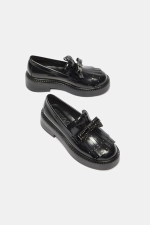 Ribbon fringe loafer(black)