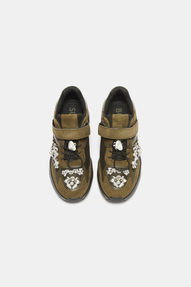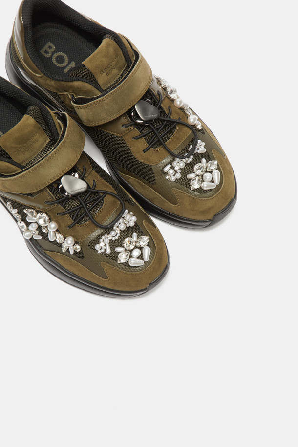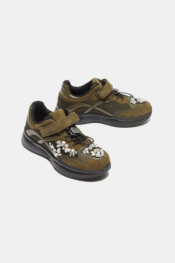 Dazzling velcro sneakers(khaki)