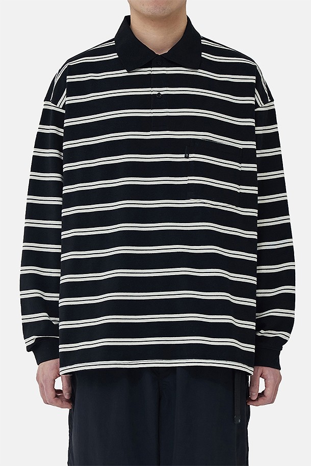 WIDE POLO L/S SHIRT - BLACK STRIPE