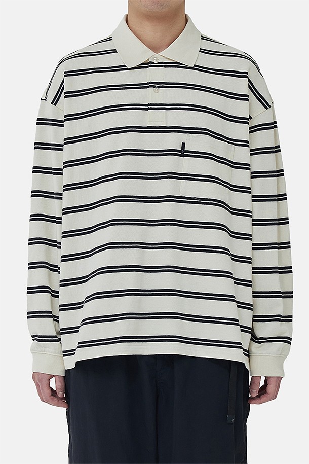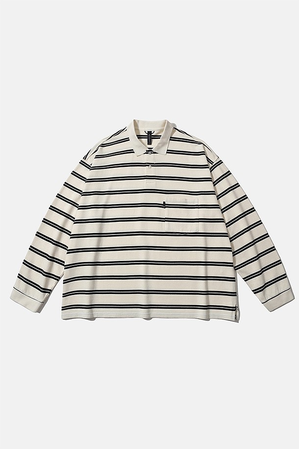WIDE POLO L/S SHIRT - ECRU STRIPE