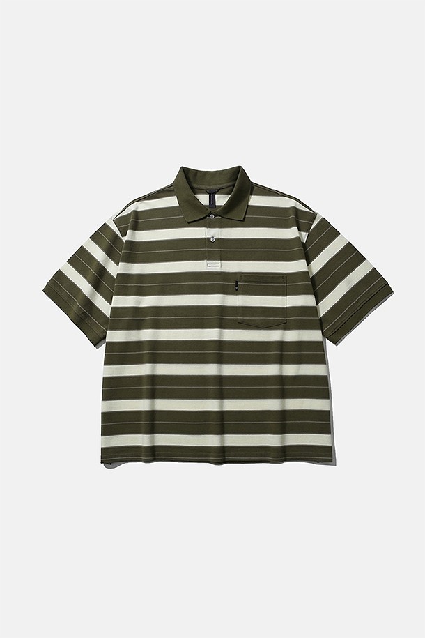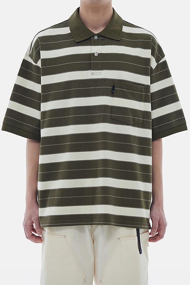 WIDE POLO H/S SHIRT - OLIVE MULTI STRIPE