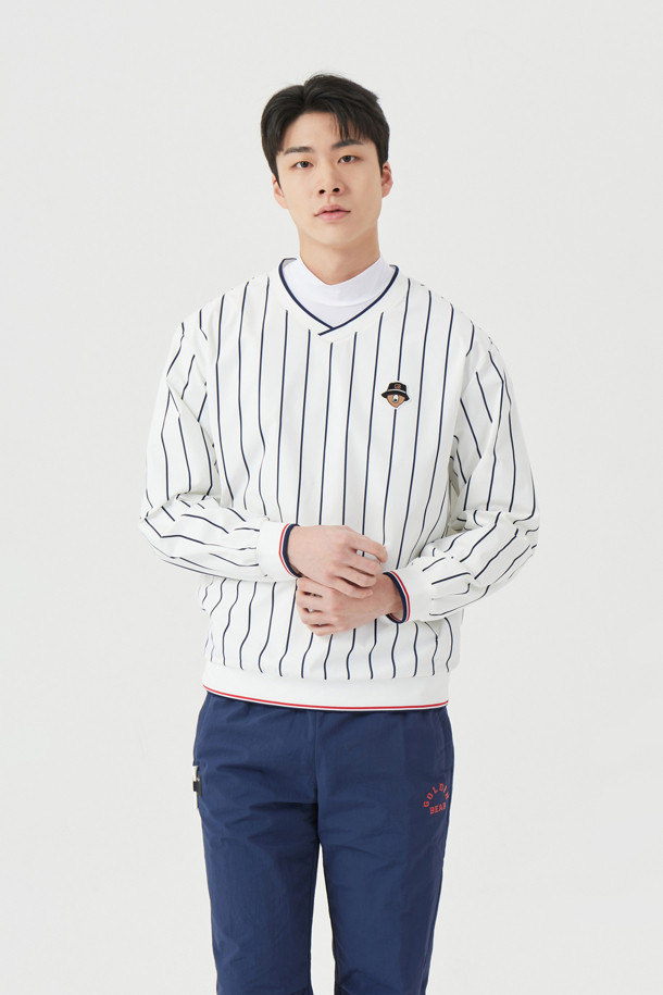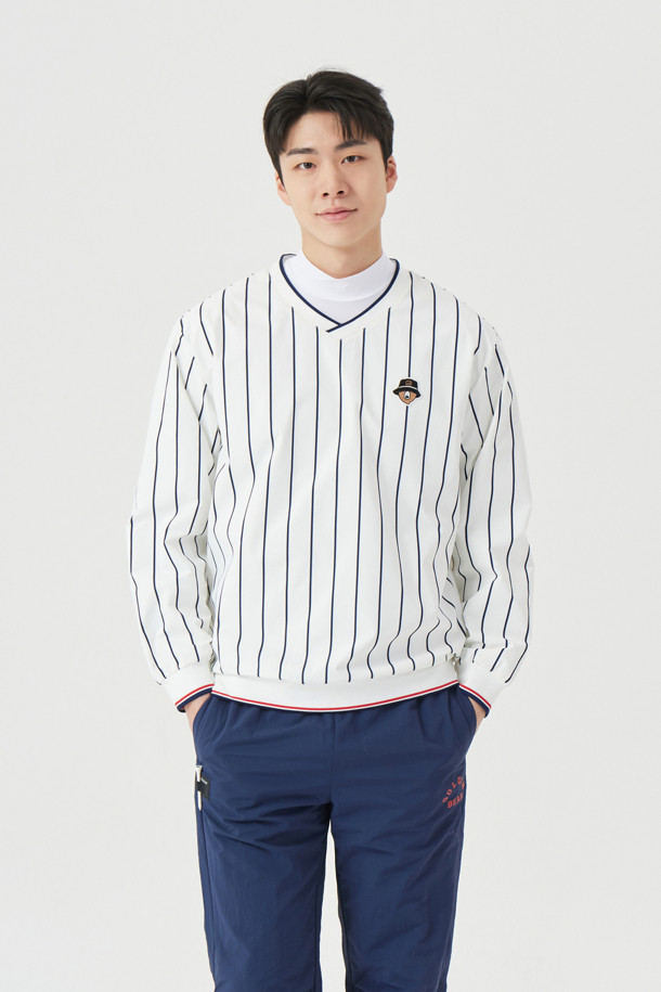 (U) Vertical Striped Woven Pullover