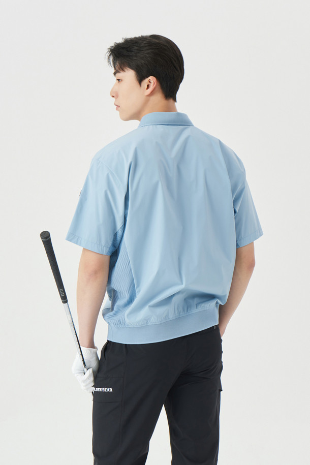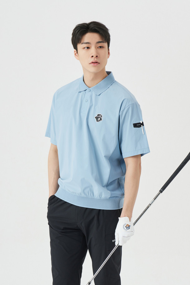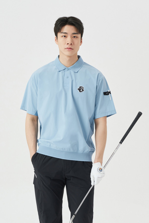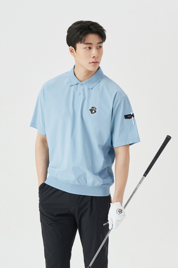 (M) Stretch Woven Mesh Hybrid Polo T-shirt