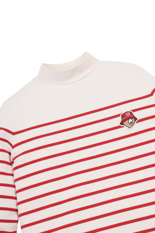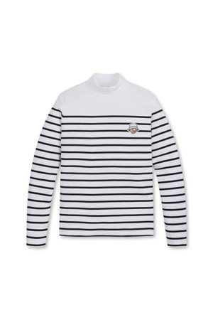 (W) Mock-neck Striped T-shirt