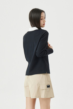 (W) Contrast Collar Long Sleeve T-shirt