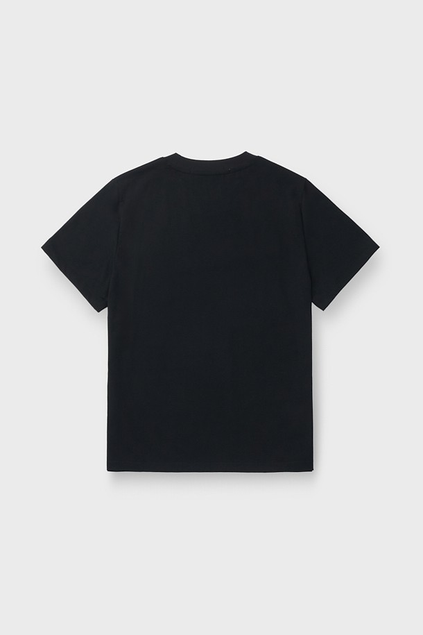 BASIC 로고 자수 실켓 반팔 티셔츠