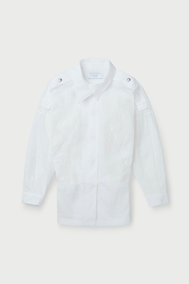 WOUNA 오버핏 블루종 버튼 셔츠