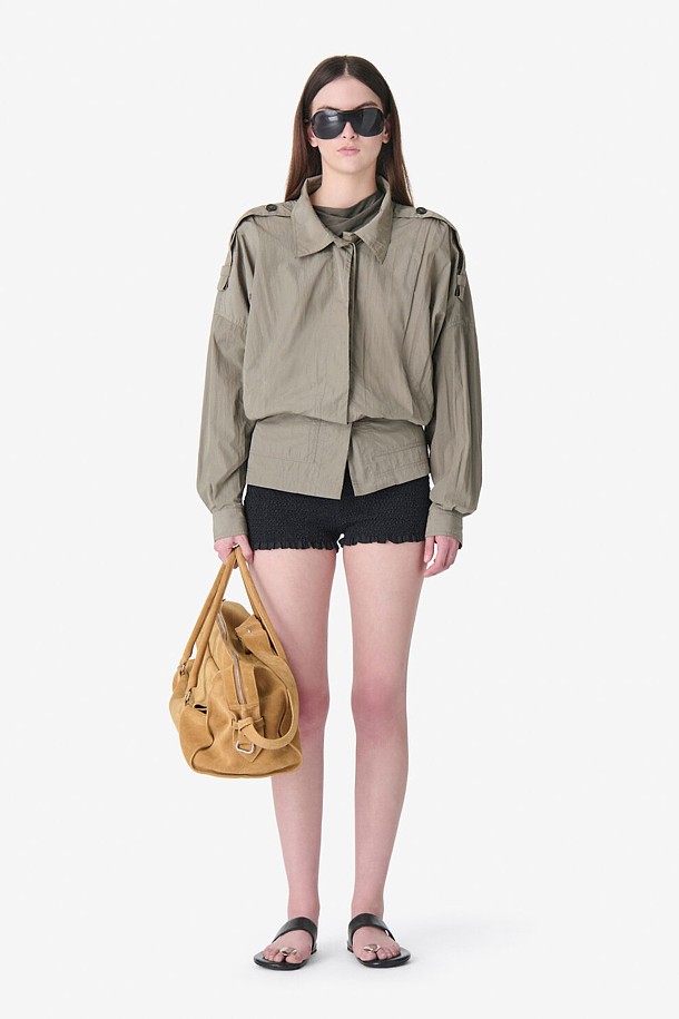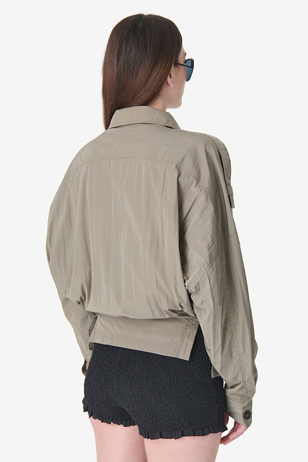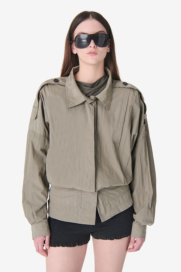 WOUNA 오버핏 블루종 버튼 셔츠