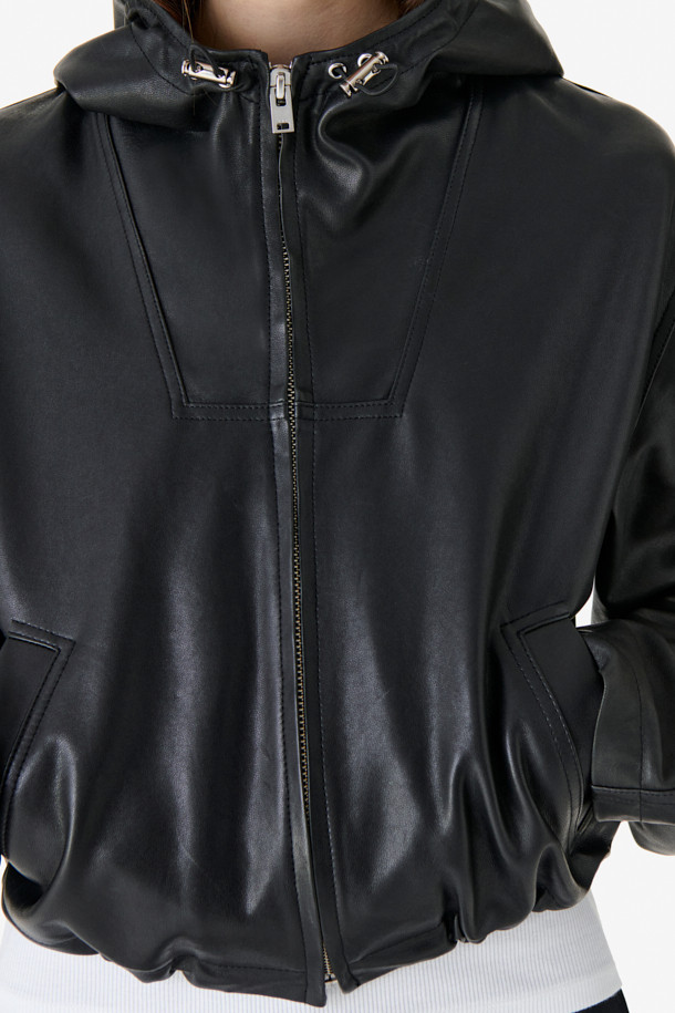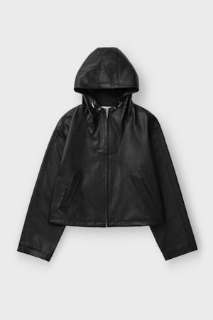 TULUM 후디드 숏 가죽 자켓