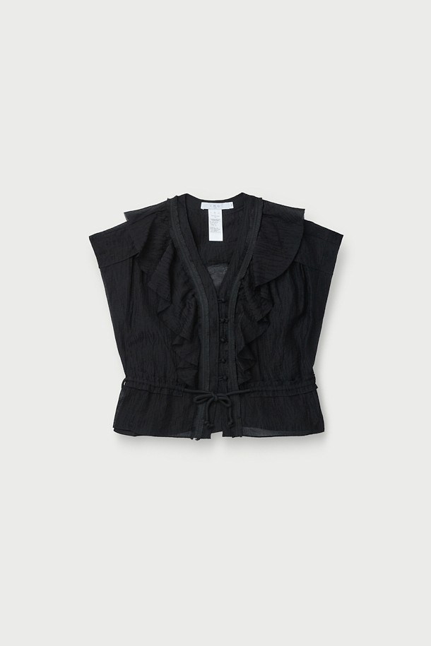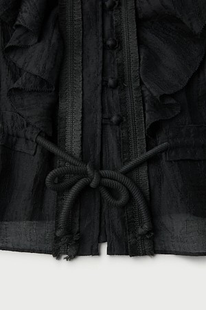 JALISSA 러플 타이드 벨트 버튼 블라우스