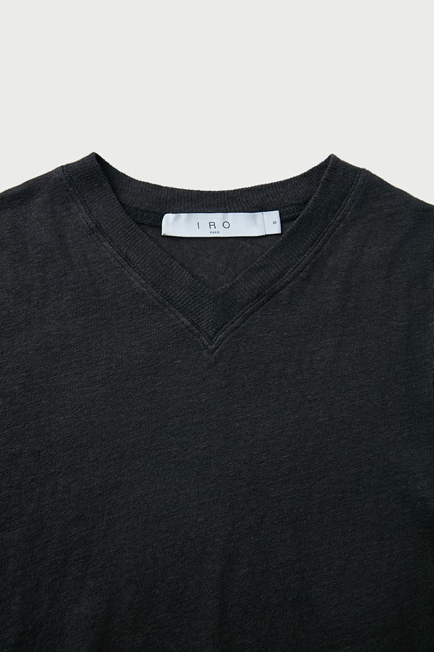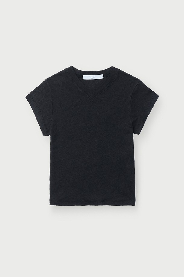 SYBEL 리넨 브이넥 슬림 티셔츠