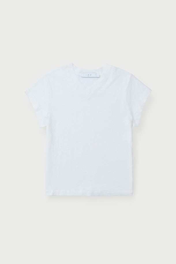 SYBEL 리넨 브이넥 슬림 티셔츠