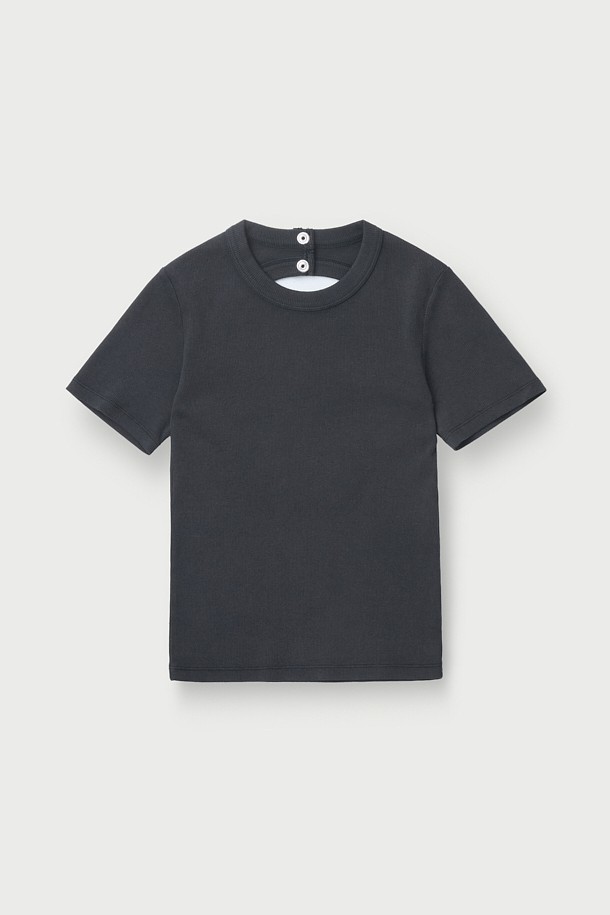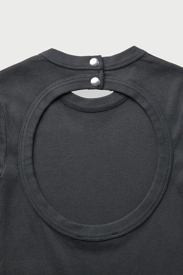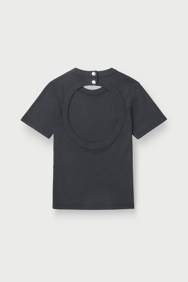 AIYANASPE 컷아웃 백 슬림 티셔츠