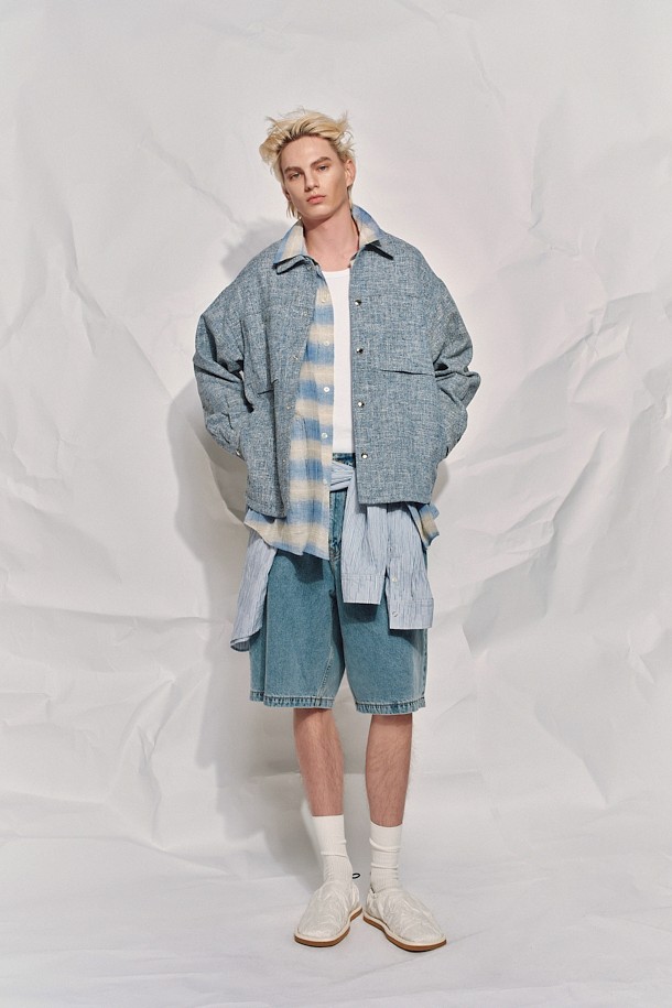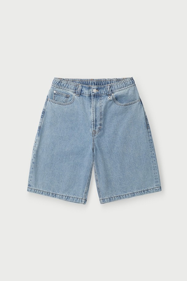 PZUREE 데님 펀칭 버뮤다 밴딩 쇼츠