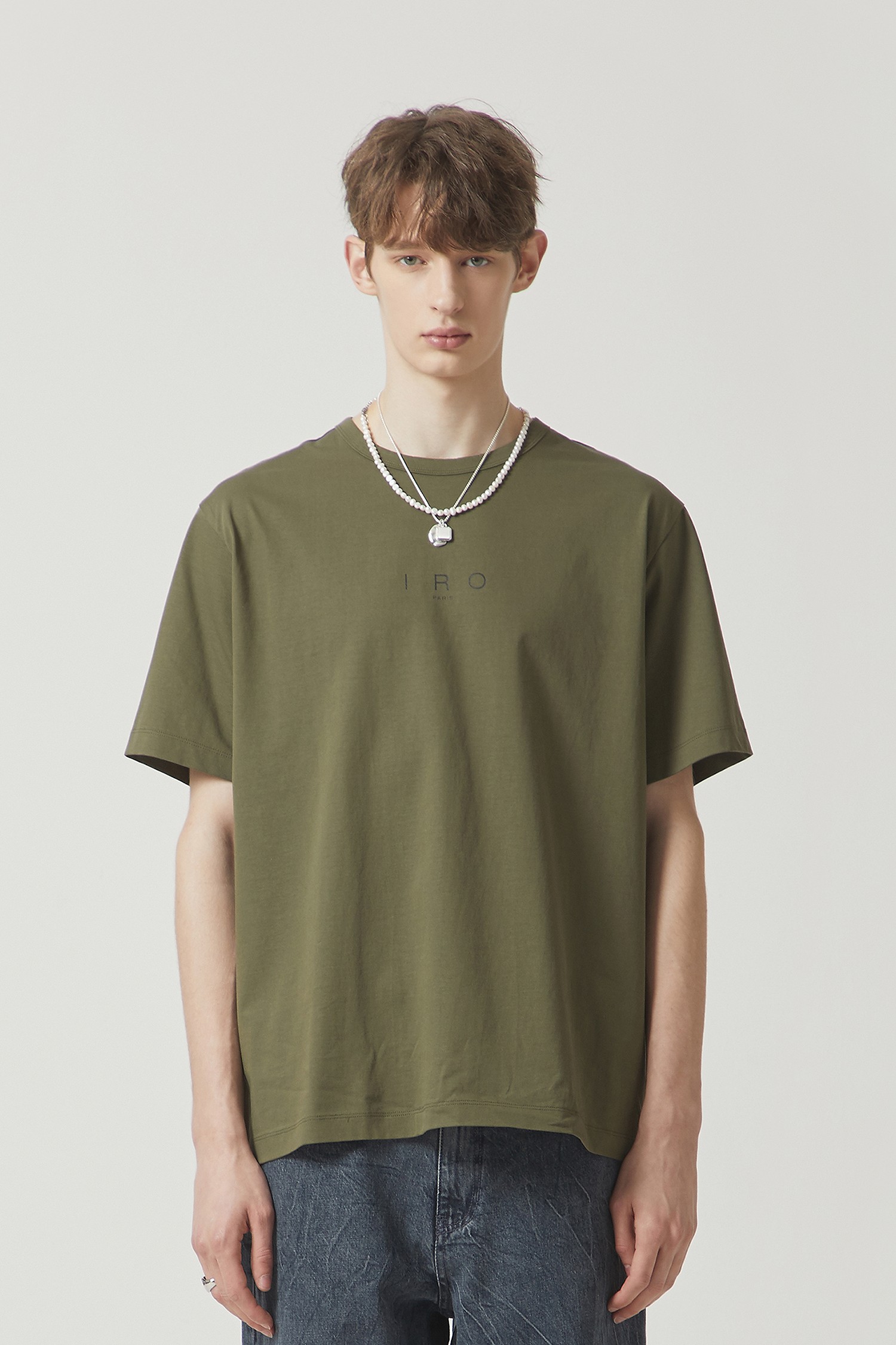 카키 IRO 로고 베이직 반팔 티셔츠