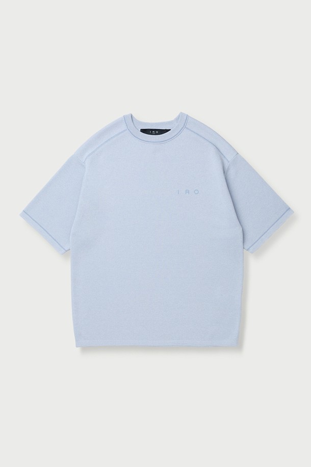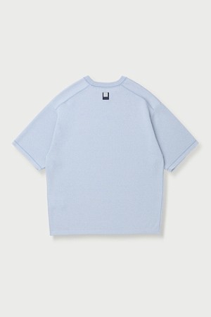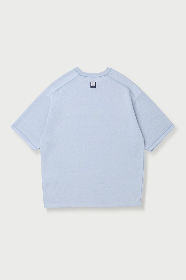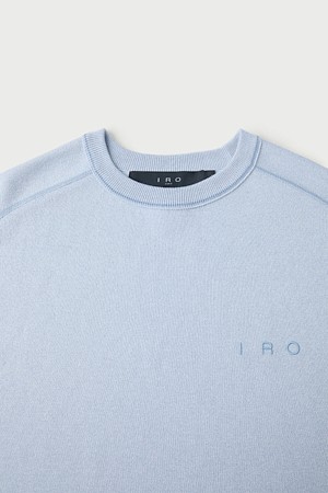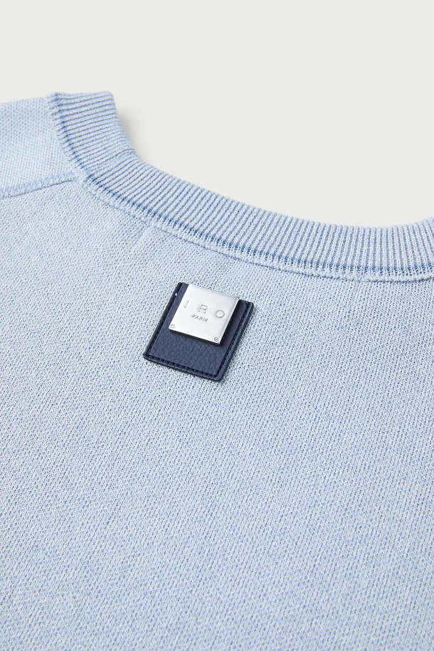 Raccord 반팔 강연 자수 배색 라운드넥 스웨터