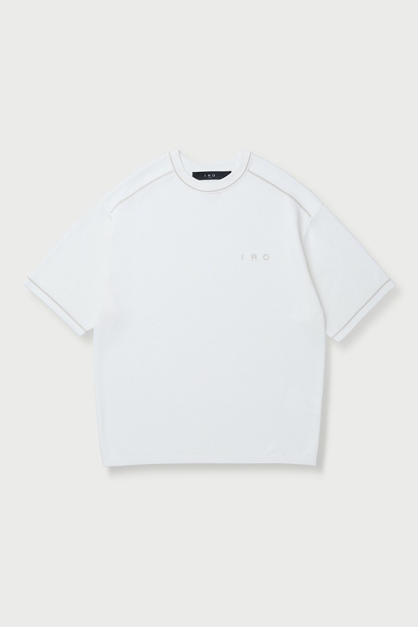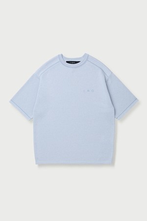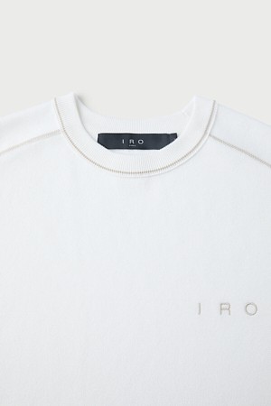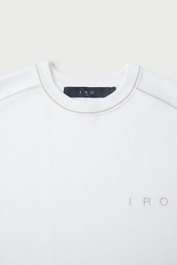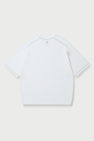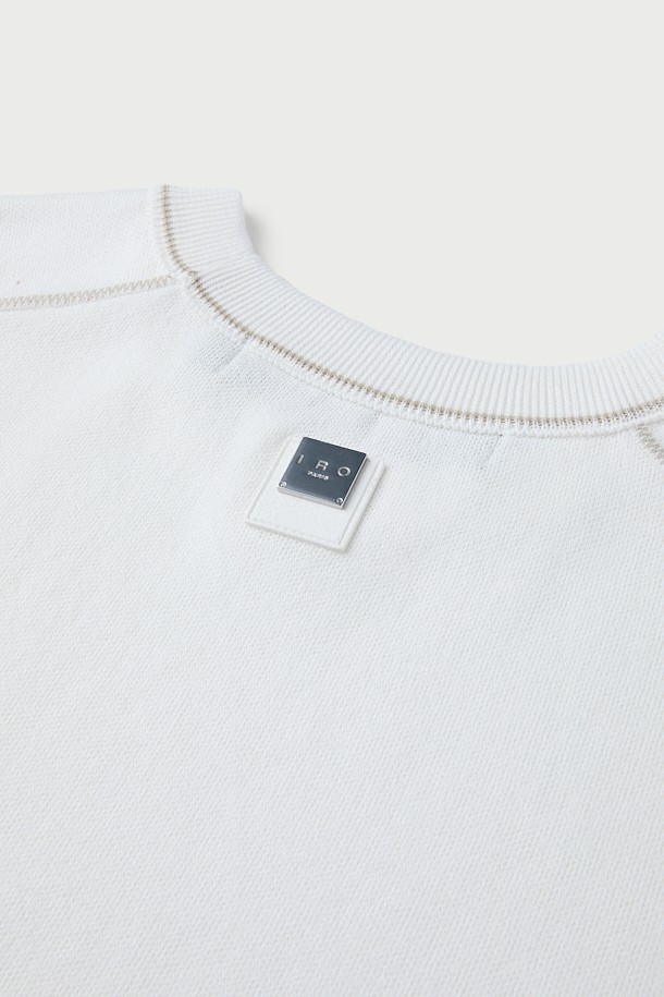 Raccord 반팔 강연 자수 배색 라운드넥 스웨터