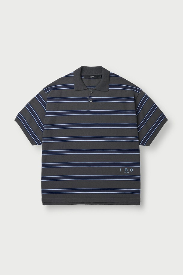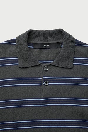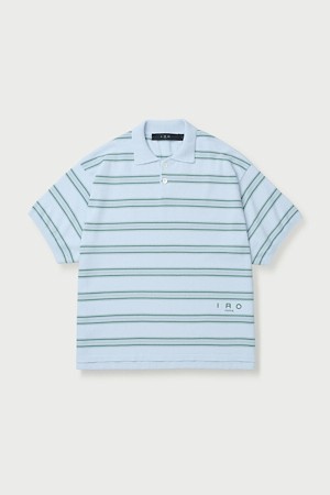 Maree 카라 스트라이프 테리 반팔 스웨터