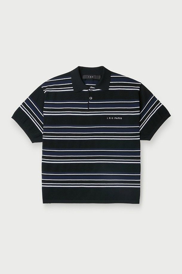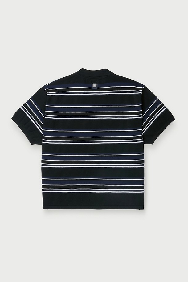 Galon 카라 볼륨 스트라이프 반팔 스웨터