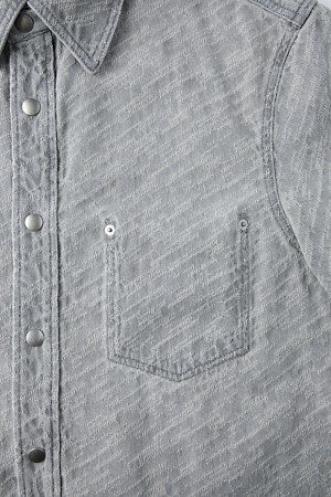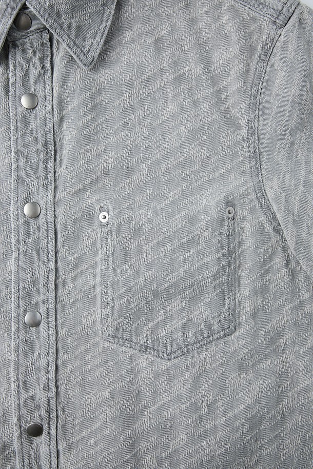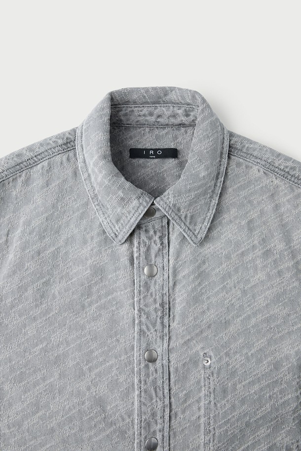 CELOSIE 워시드 라이트 데님 숏 슬리브 셔츠