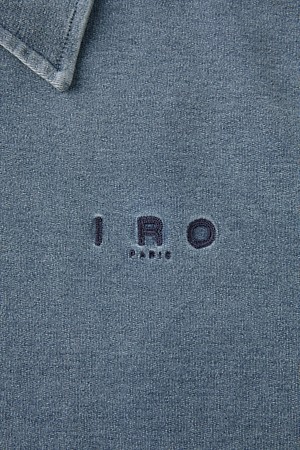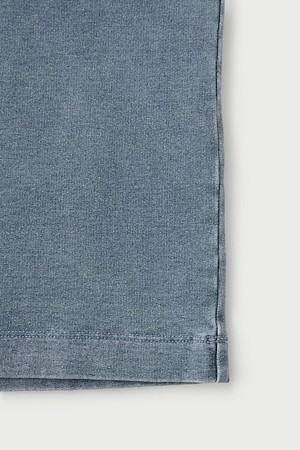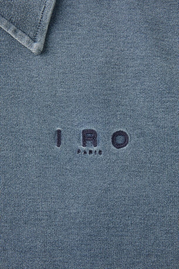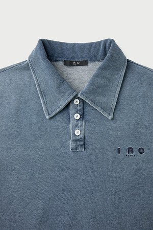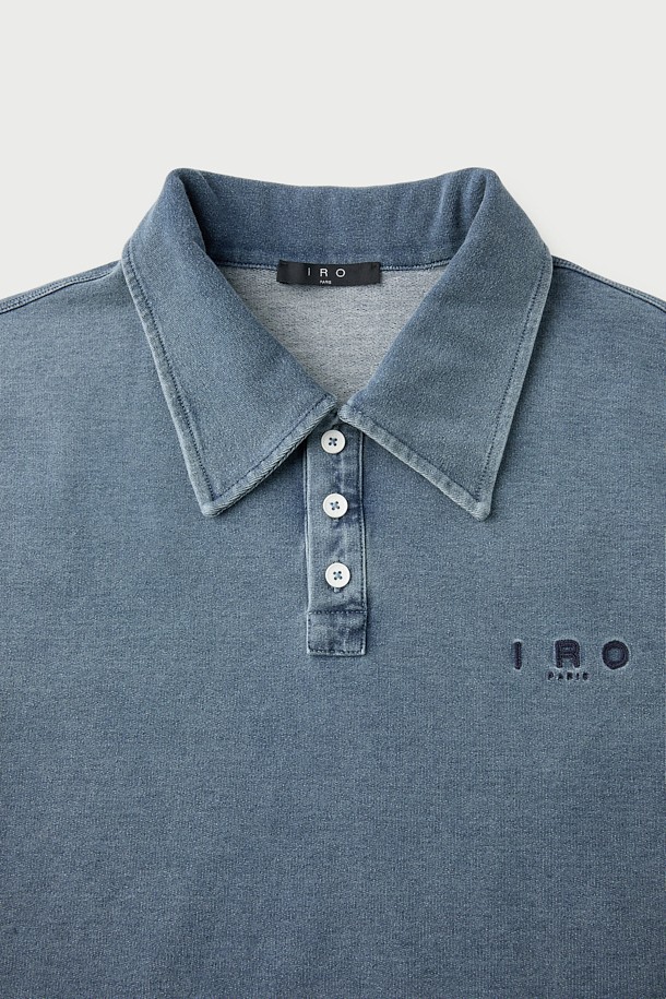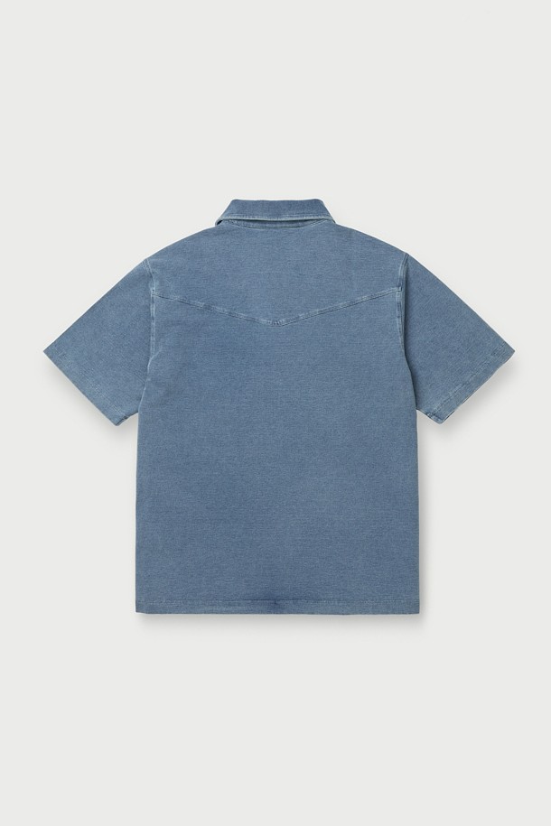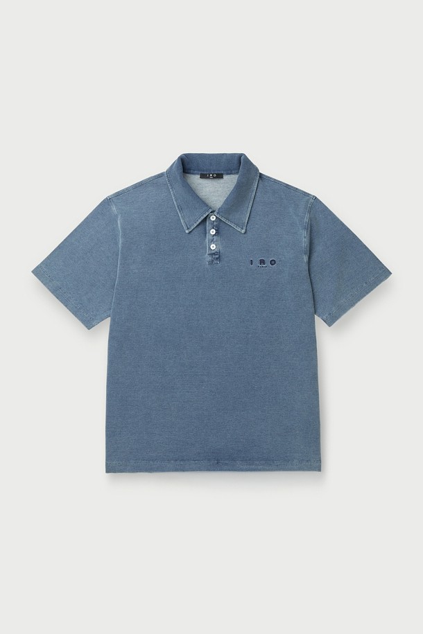 JARETH 데님 텍스쳐 버튼 카라 숏 슬리브 티셔츠