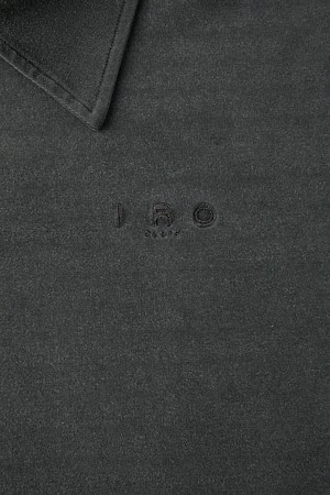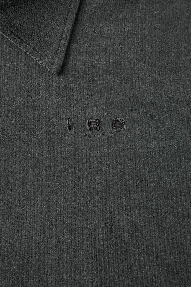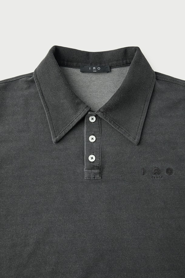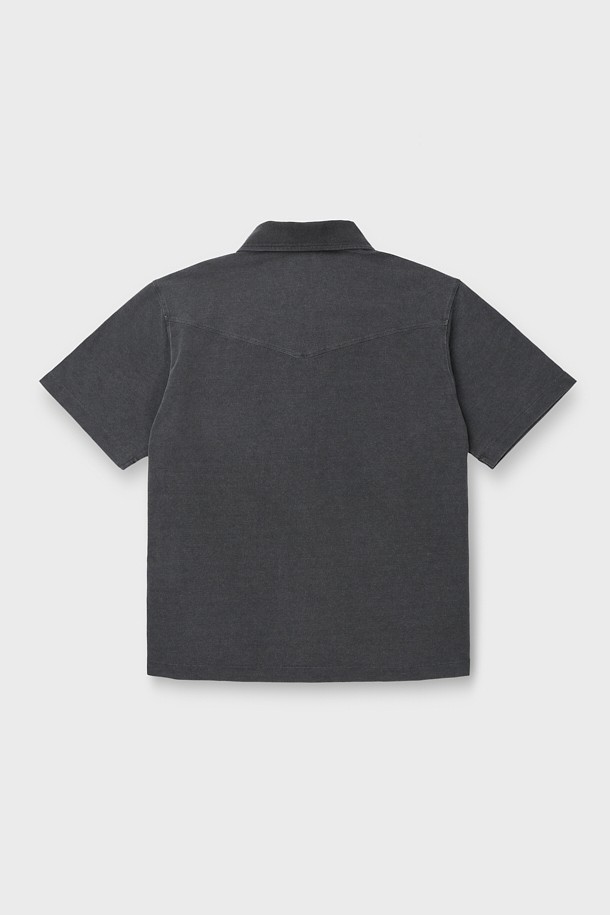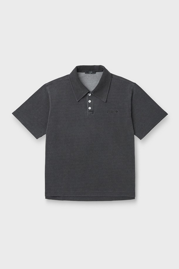 JARETH 데님 텍스쳐 버튼 카라 숏 슬리브 티셔츠